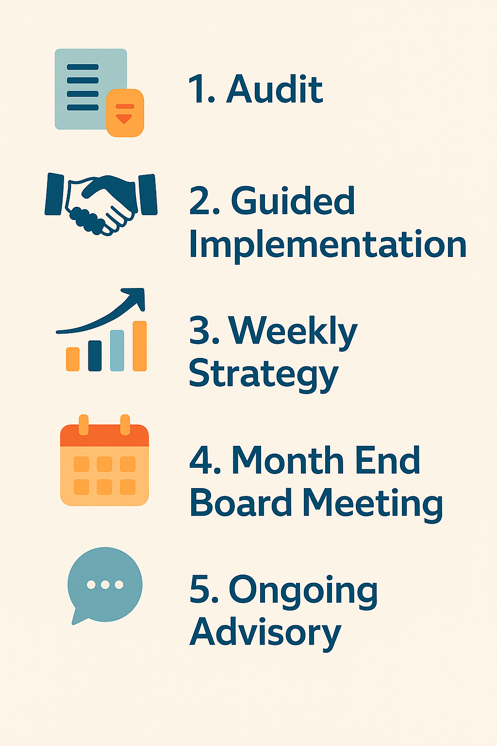 Our Amazon consulting services guide you through a 5-step plan: audit, implementation, strategy calls, reviews, and ongoing advisory. With expert Amazon business mentoring and account optimisation support, we keep your brand on track for growth.